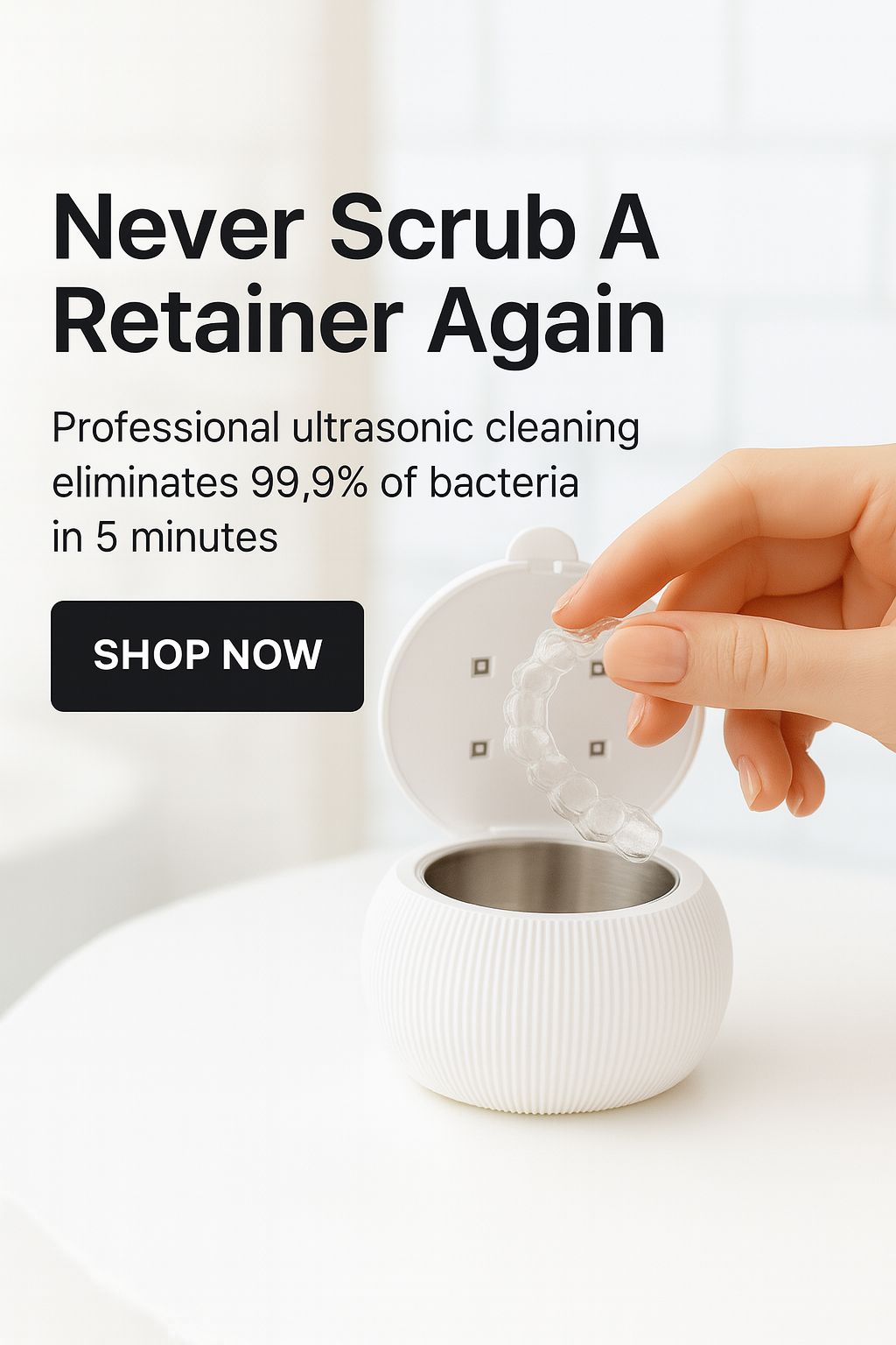 Cutting-edge ultrasonic technology ensures your retainer comes out crystal-clear and spotless, every single time.