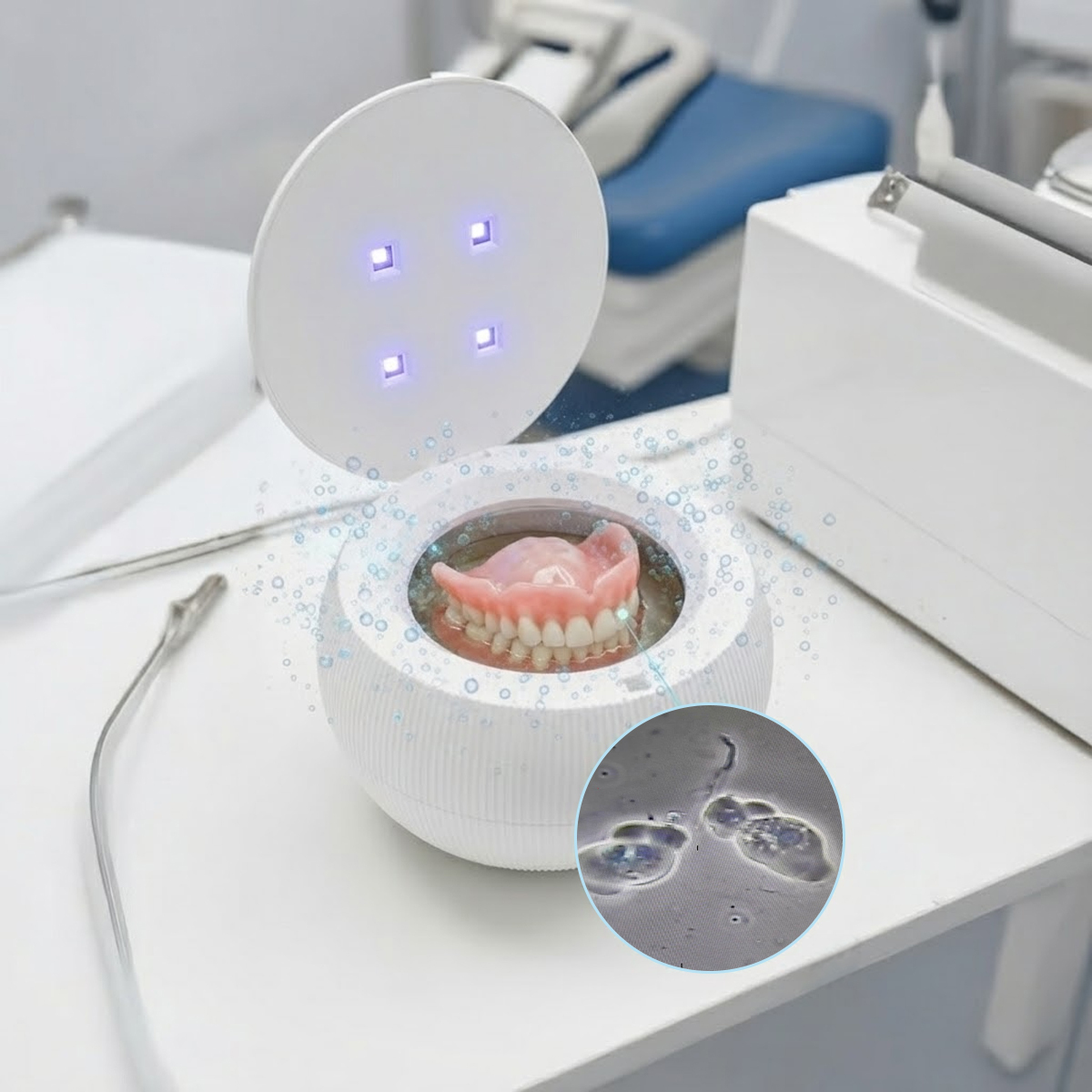 "Bought this for my dad who's 78 and wears dentures. He was soaking them in that blue tablet stuff but they were still getting this buildup around the edges that was impossible to get off. I was skeptical but figured it was worth a try. After the first cleaning cycle you could see the difference immediately. The dentures actually looked shiny again! He uses it every morning now and says his mouth feels fresher too. Really happy with this purchase."